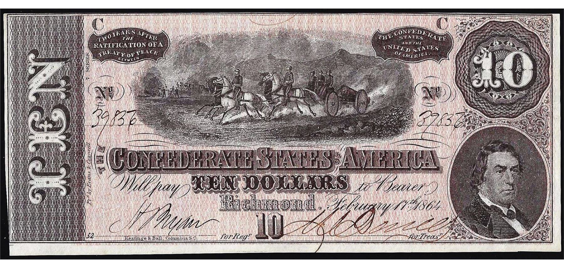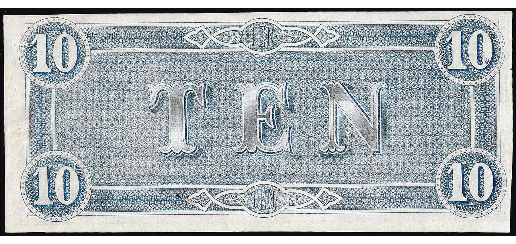 One 1864 $10 Confederate States of America Note.