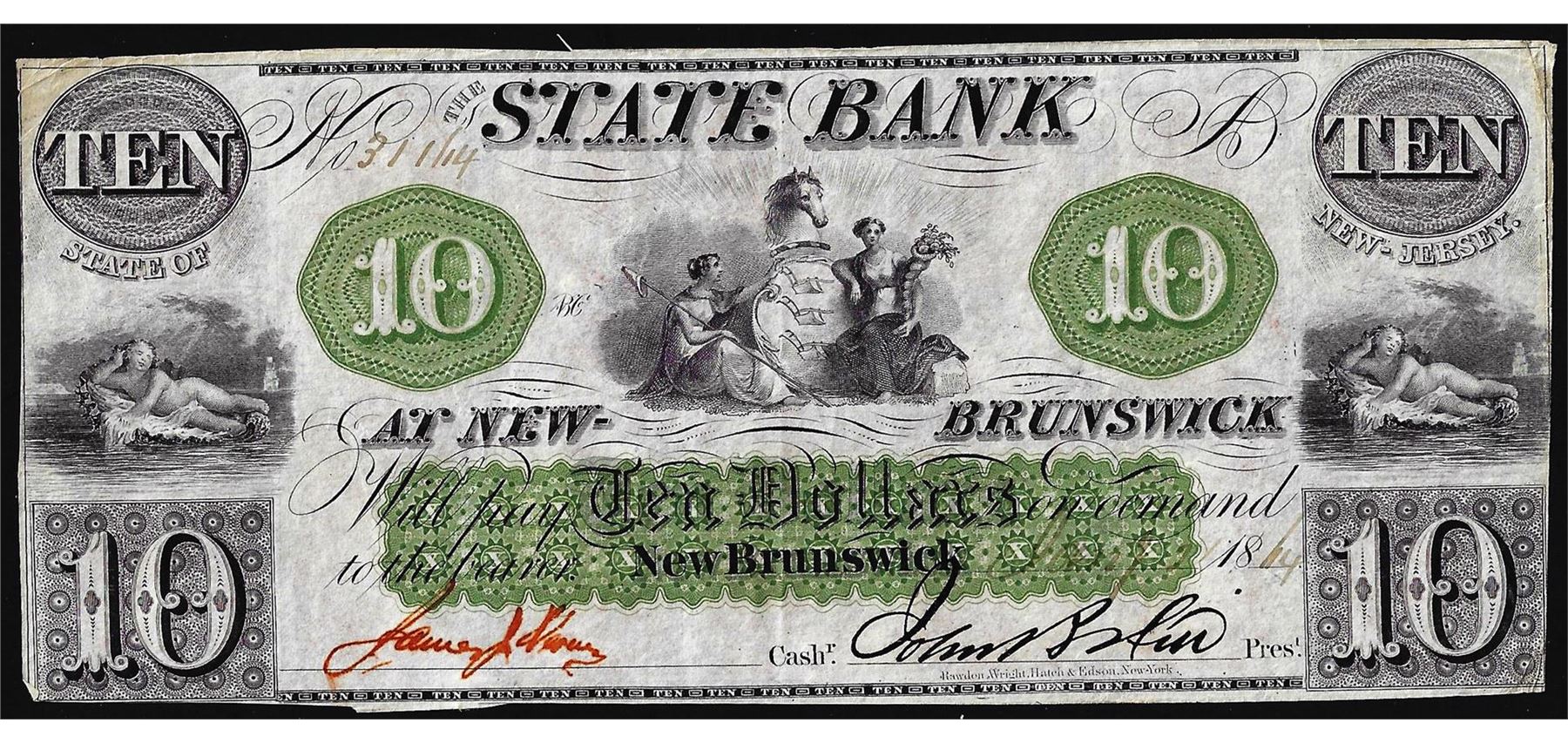 One 1864 $10 State Bank at New Brunswick Obsolete Note.