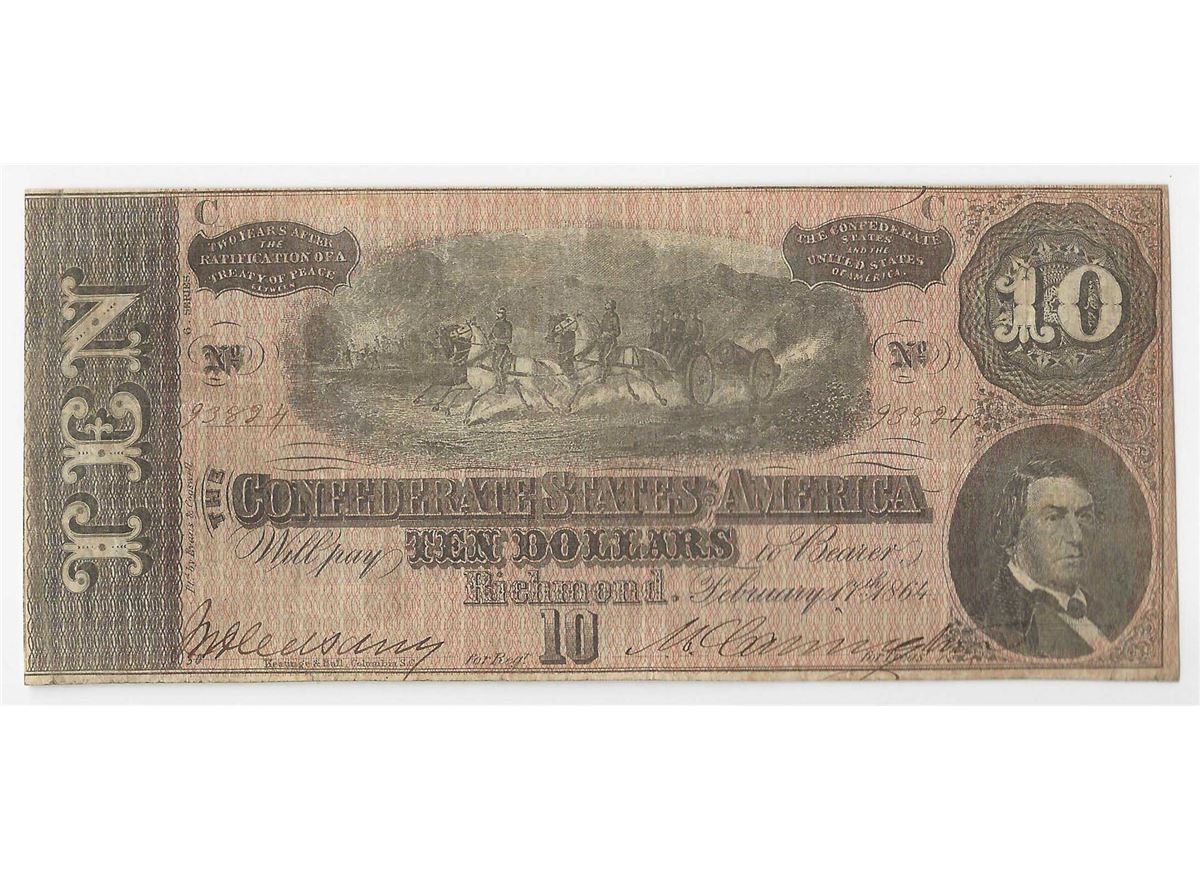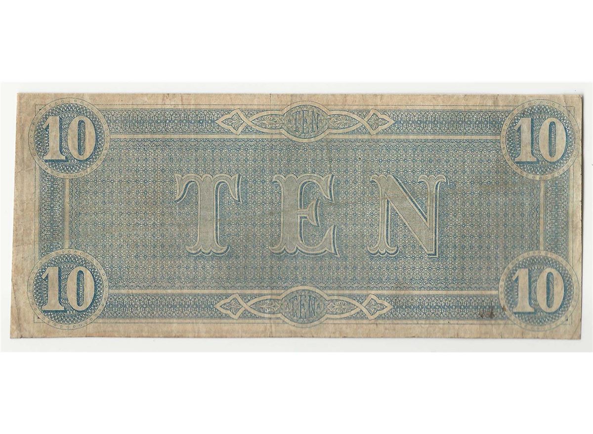 One 1864 $10 The Confederate States of America Note.