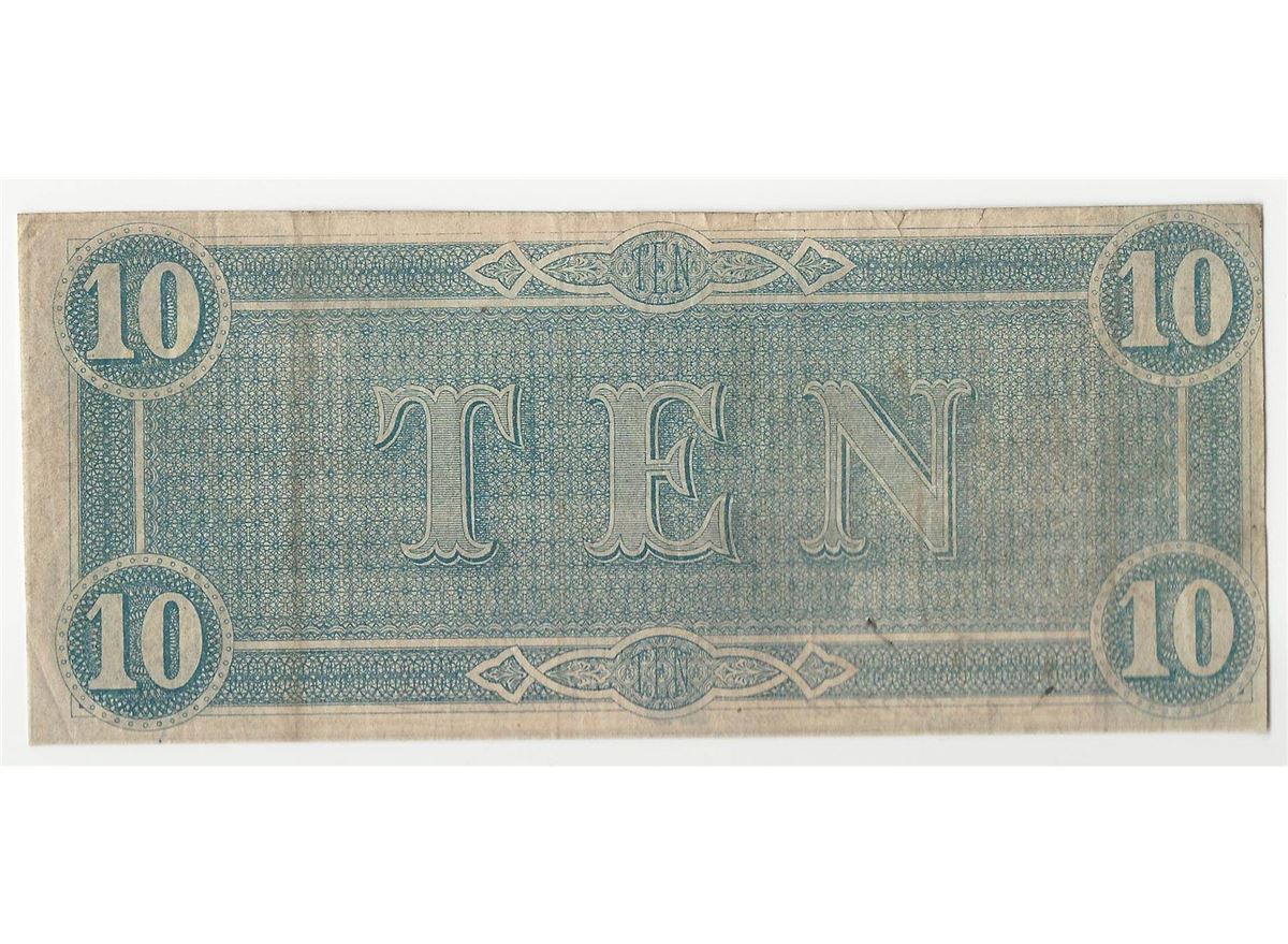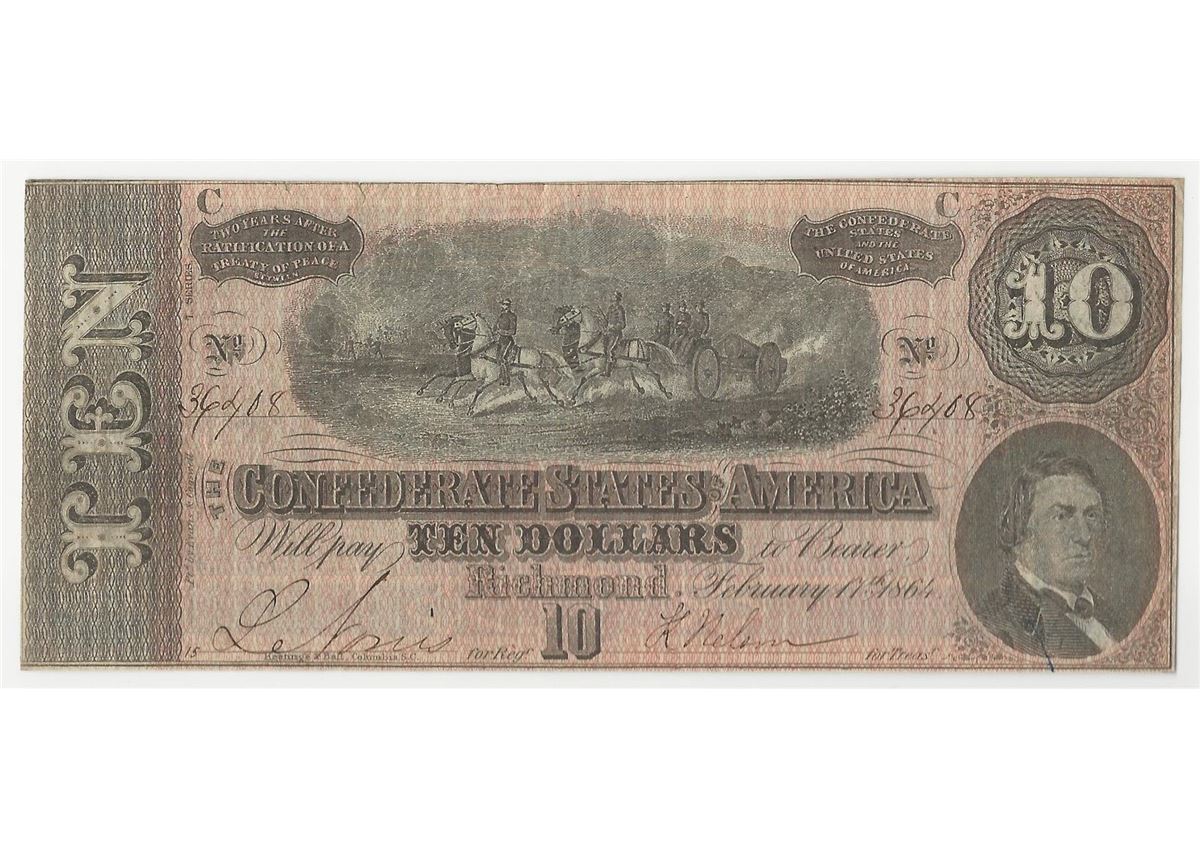 One 1864 $10 The Confederate States of America Note.