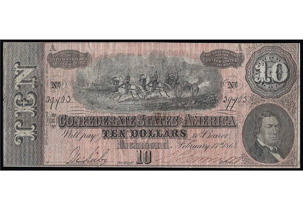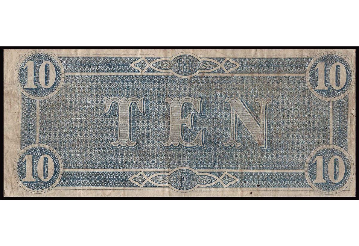 One 1864 $10 The Confederate States of America Note.