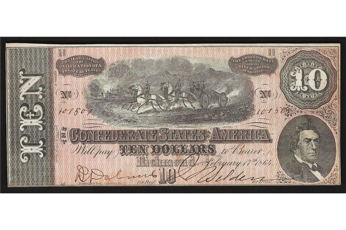 One 1864 $10 The Confederate States of America Note.