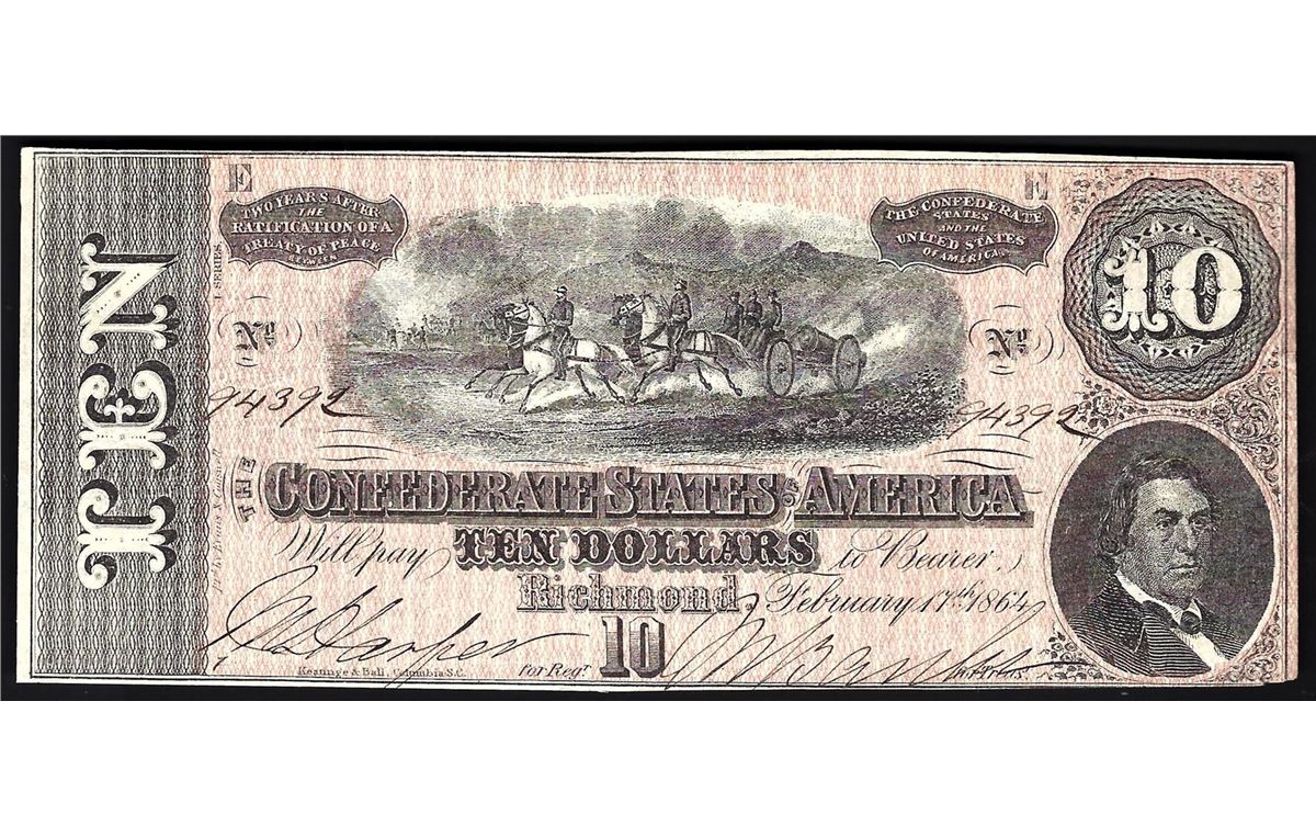 1864 $10 The Confederate States of America Note
