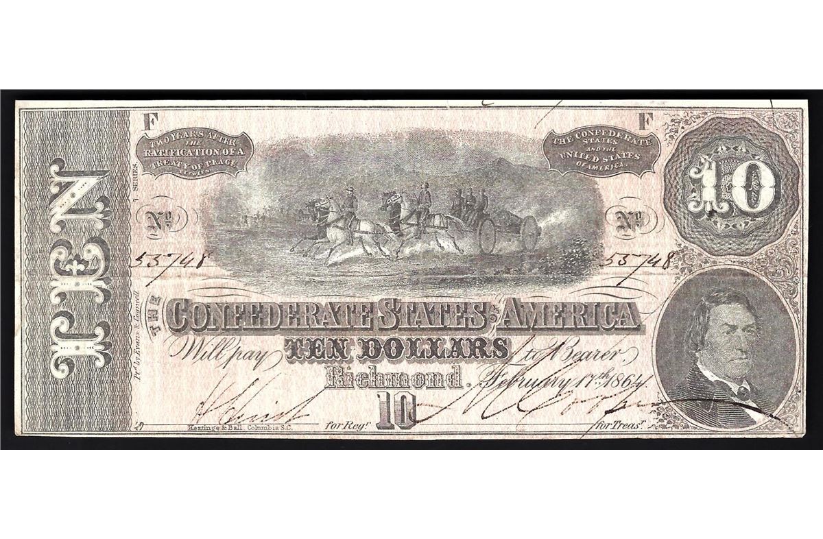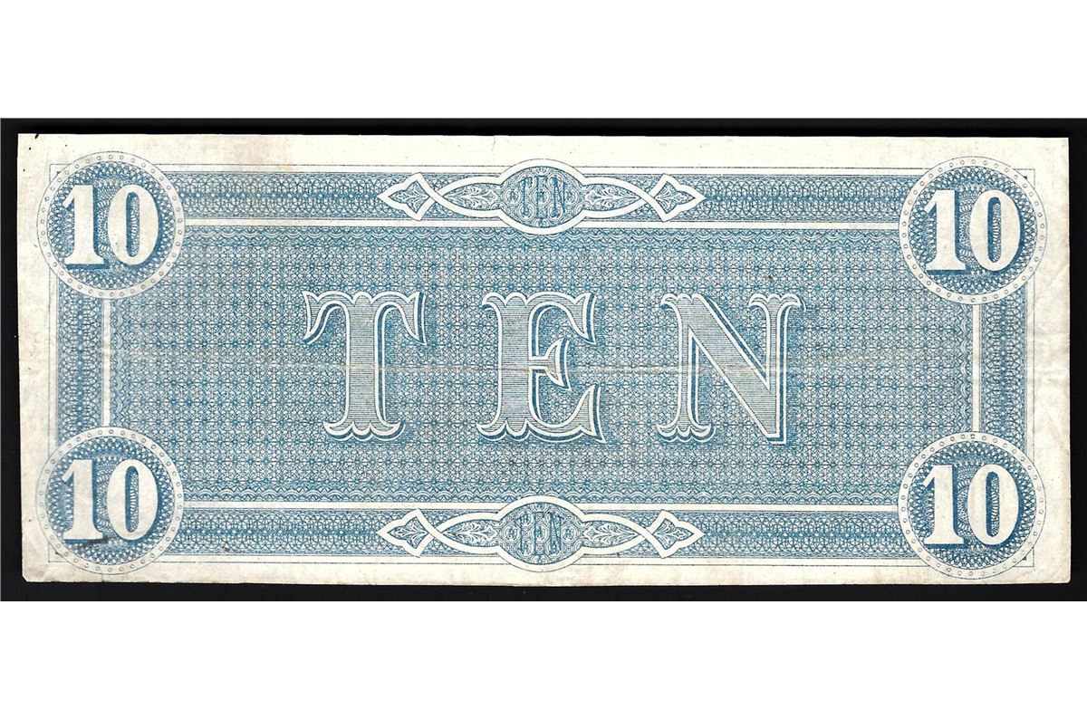 One 1864 $10 The Confederate States of America Note.