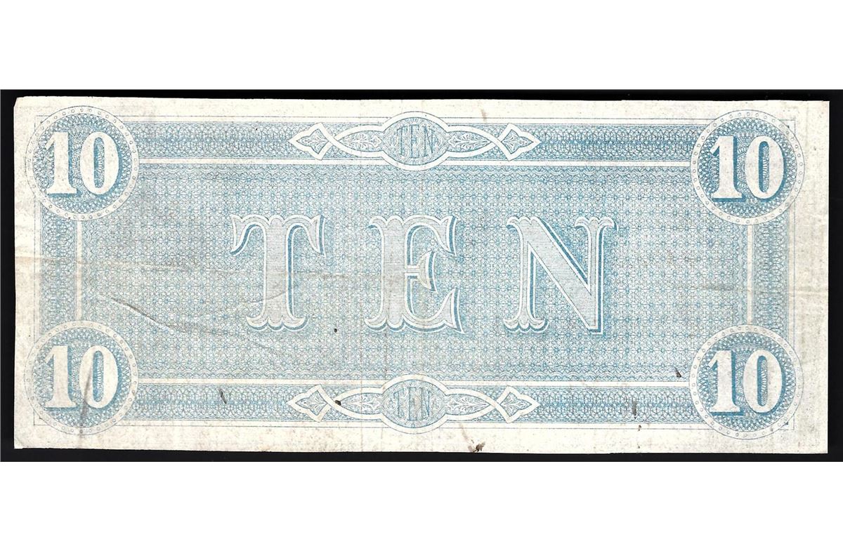 One 1864 $10 The Confederate States of America Note.