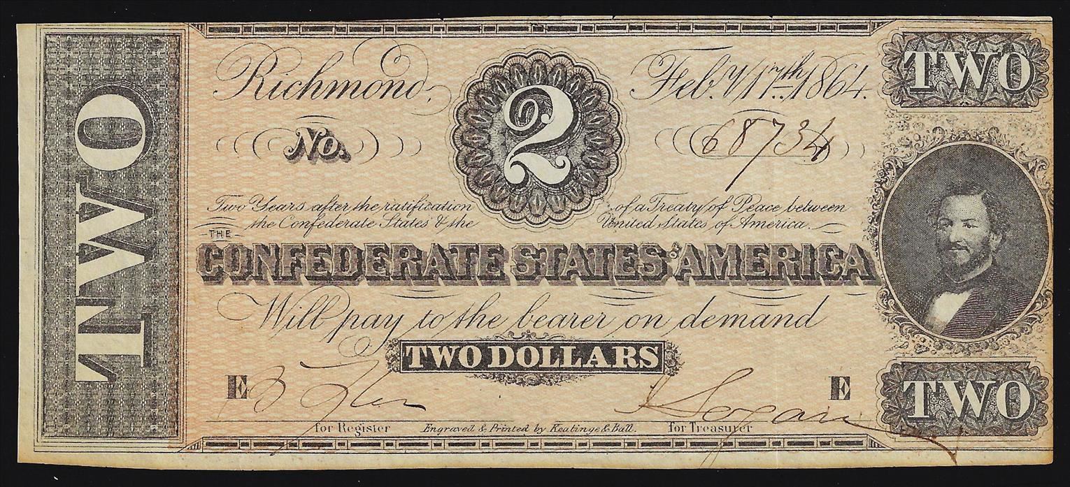 One 1864 $2 The Confederate States of America Note.
