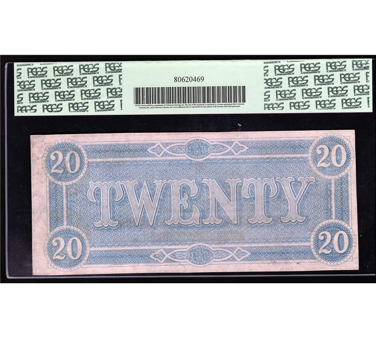 One 1864 $20 Confederate States of America Note PCGS 58PPQ. PCGS Graded.