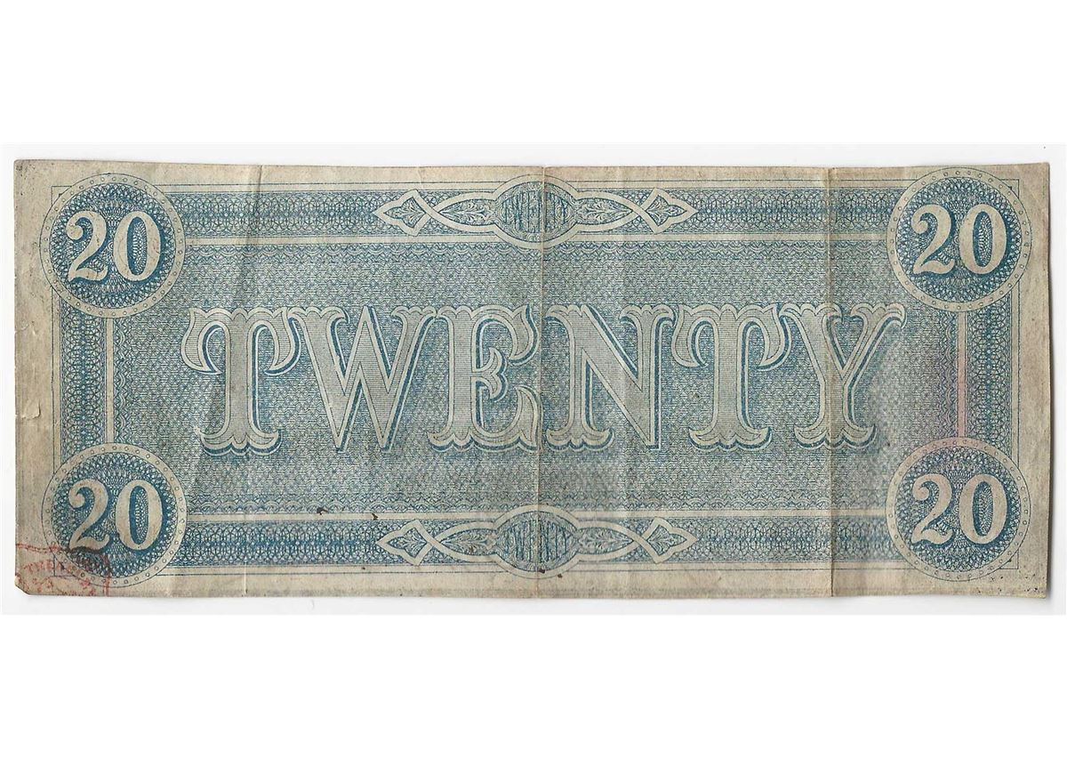 One 1864 $20 Confederate States of America Note.