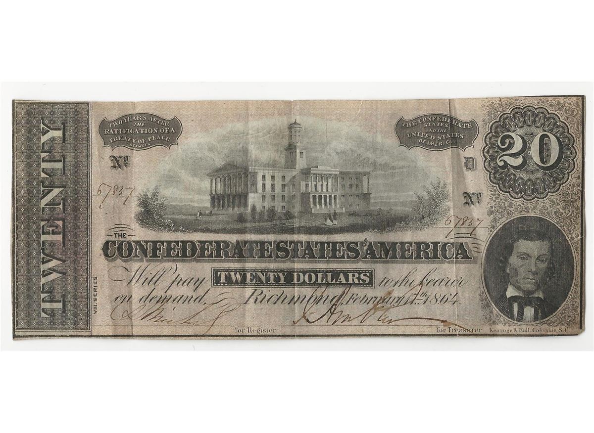 One 1864 $20 Confederate States of America Note.