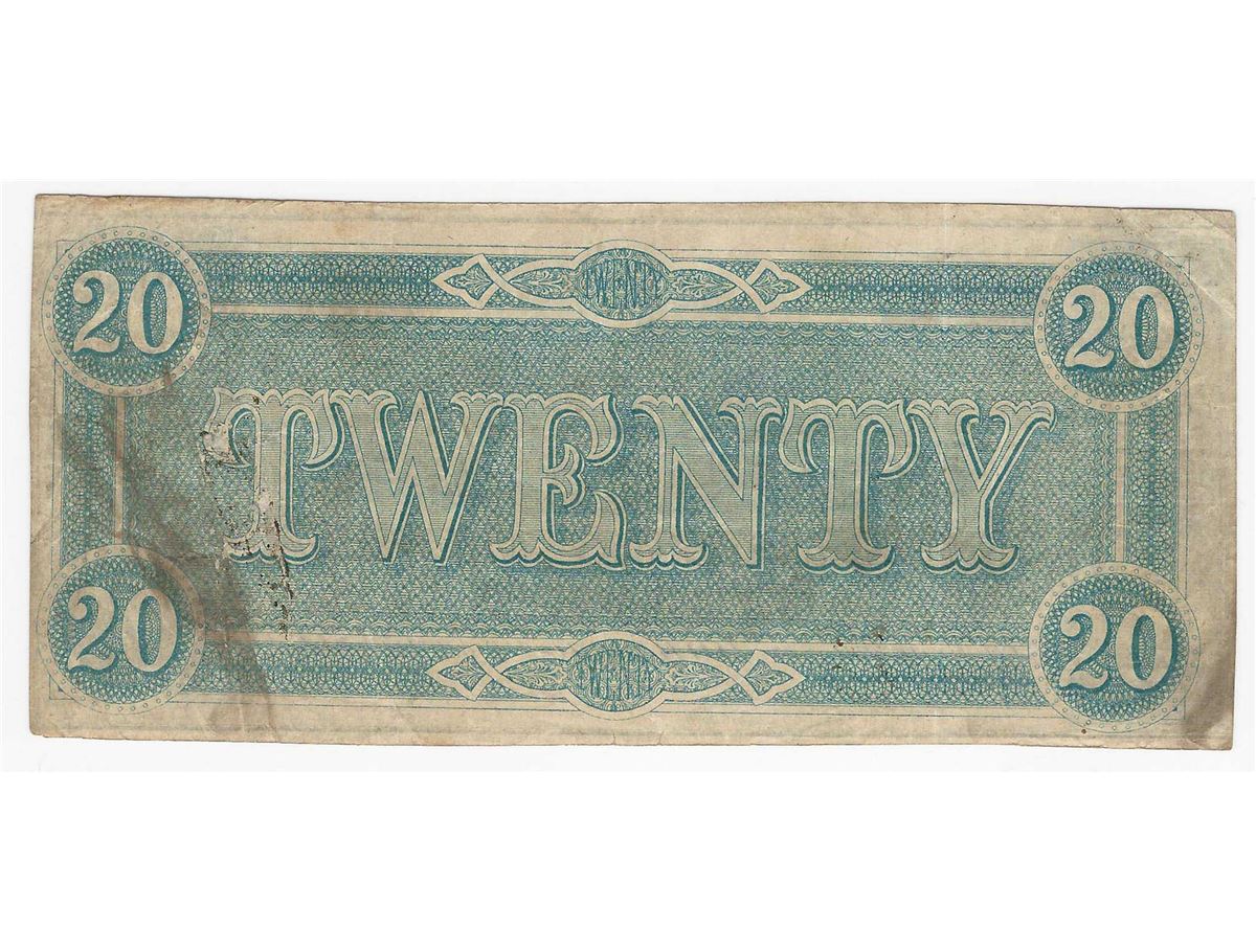 One 1864 $20 Confederate States of America Note.