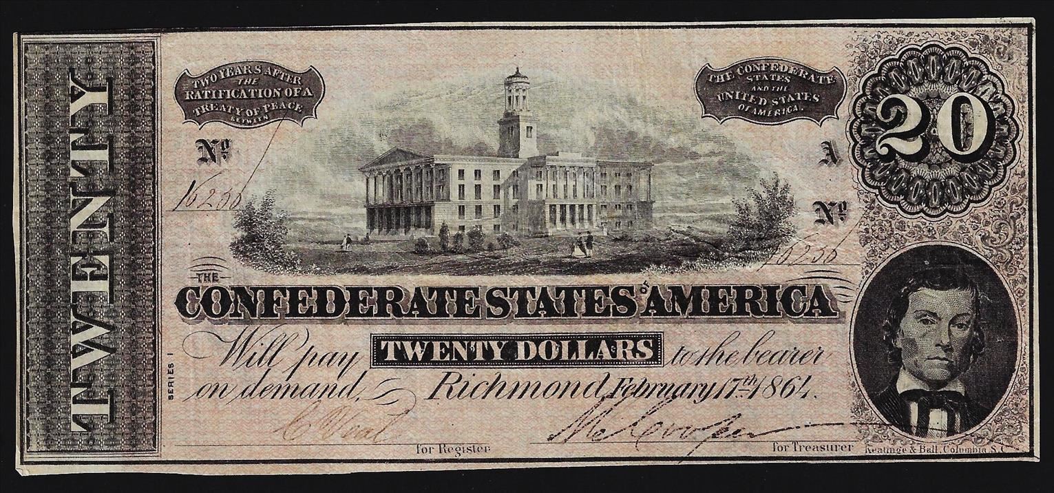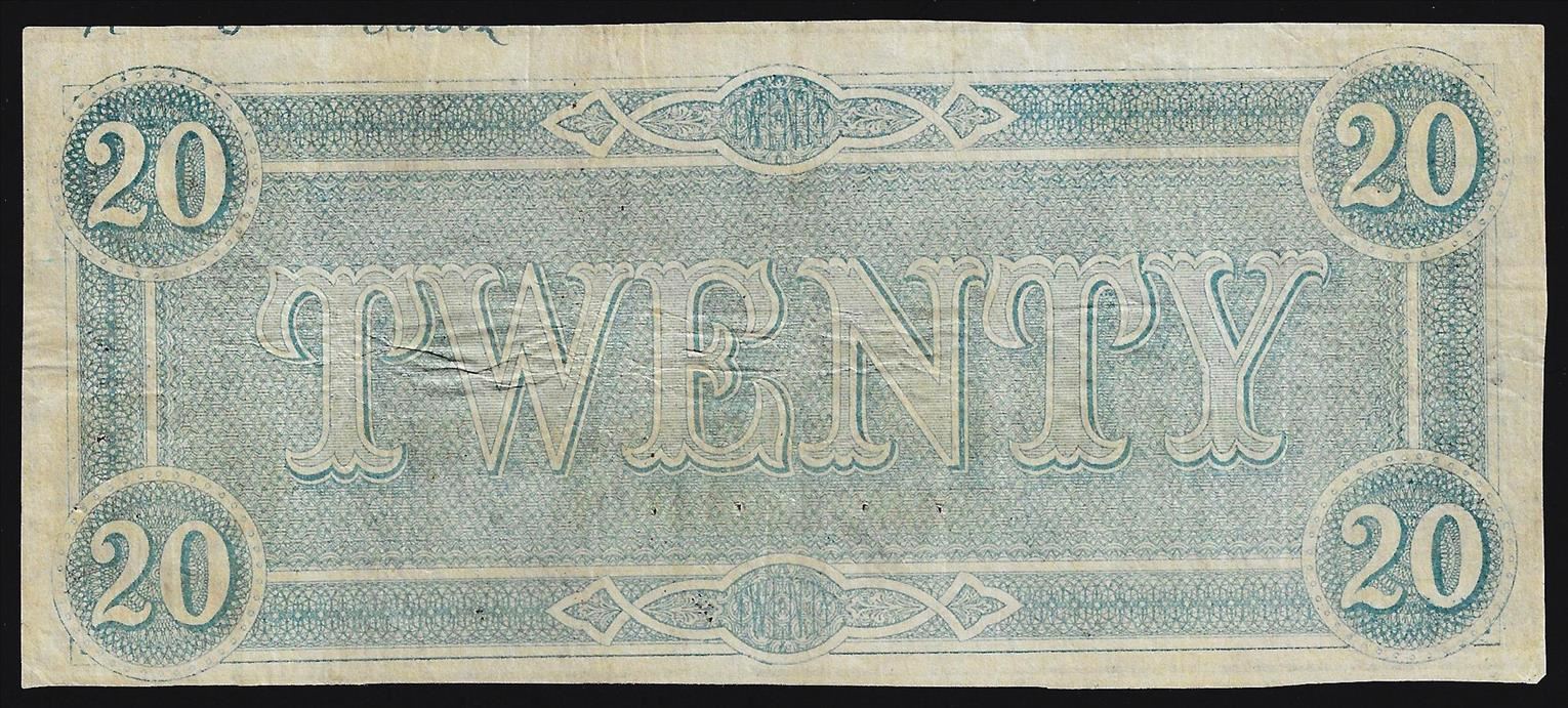One 1864 $20 Confederate States of America Note.