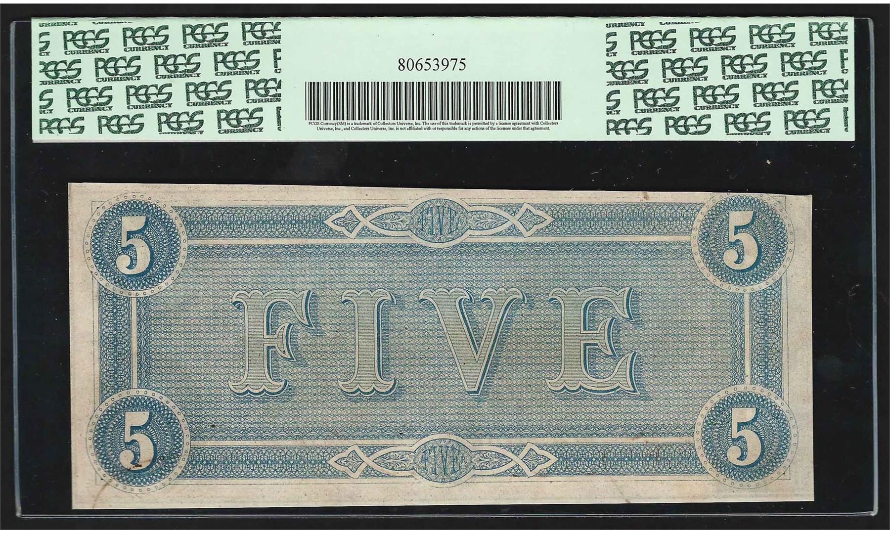 1864 $5 The Confederate States of America Note T-69 PCGS Choice New 63PPQ