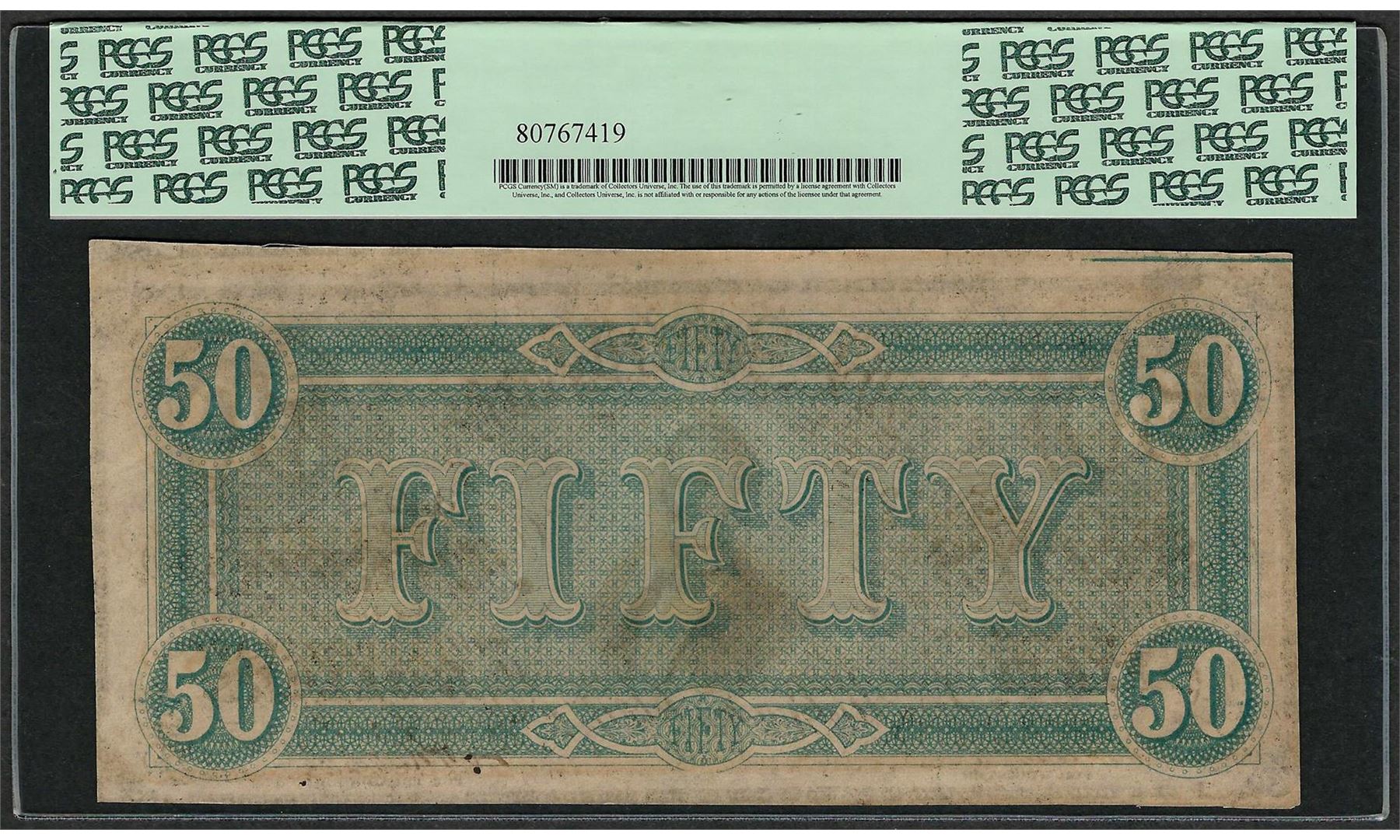 1864 $50 Confederate States of America Note T-66 PCGS Choice About New 58PPQ