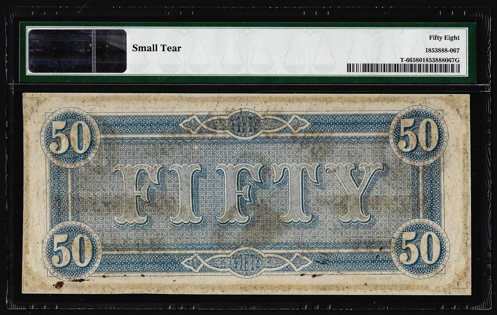 1864 $50 Confederate States of America Note T-66 PMG Choice About Uncirculated 58