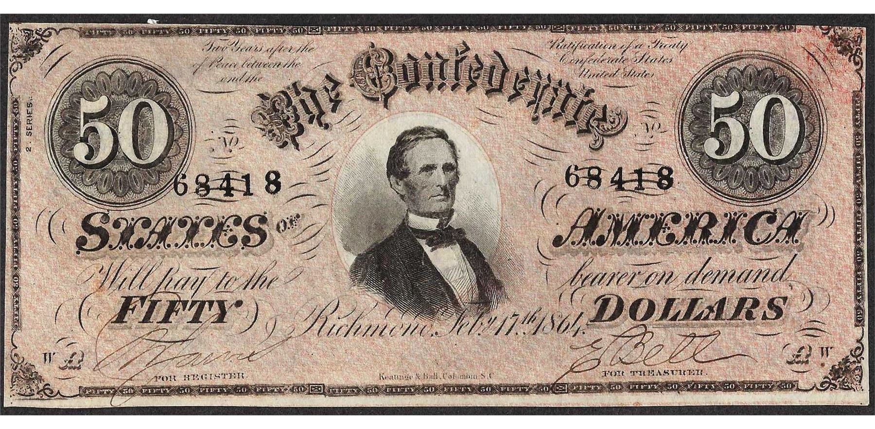 One 1864 $50 Confederate States of America Note.