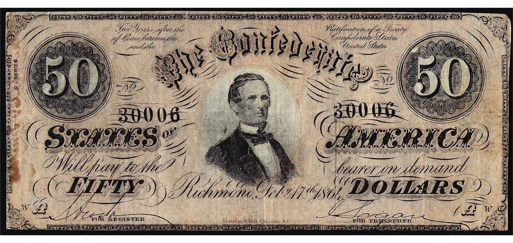 One 1864 $50 Confederate States of America Note.