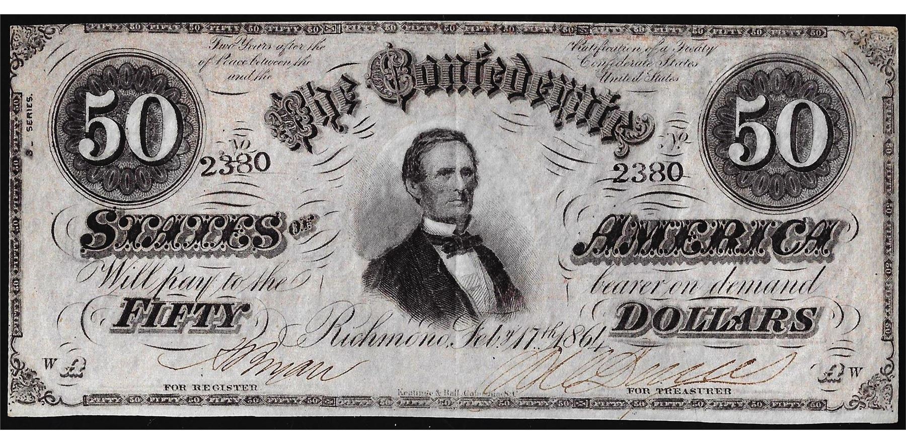 One 1864 $50 Confederate States of America Note.