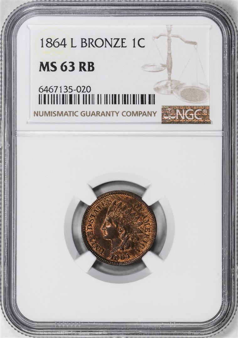 One 1864-L Bronze Indian Head Cent Coin NGC MS63RB. NGC Certified.