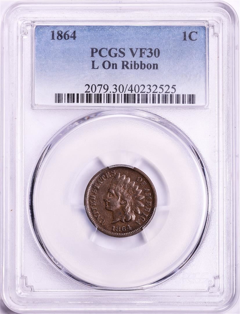 One 1864 L on Ribbon Indian Head Cent Coin PCGS VF30. PCGS Graded.