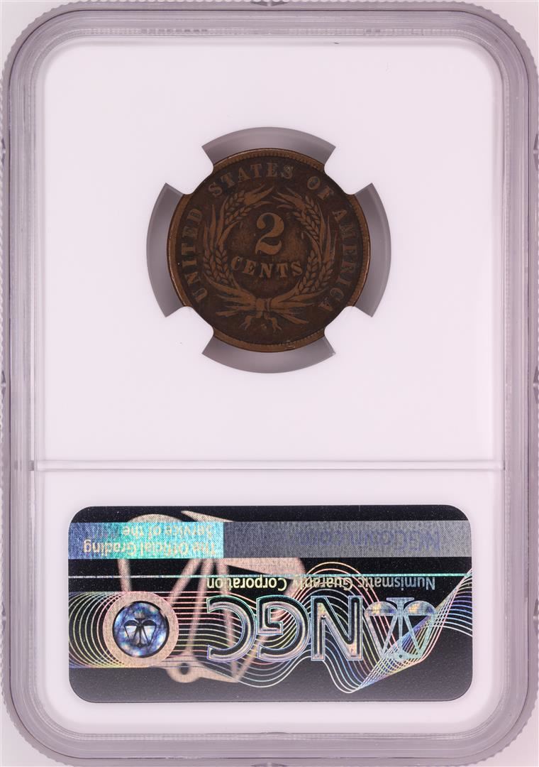 One 1864 Small Motto Two Cent Piece Coin NGC F15BN. NGC Certified.