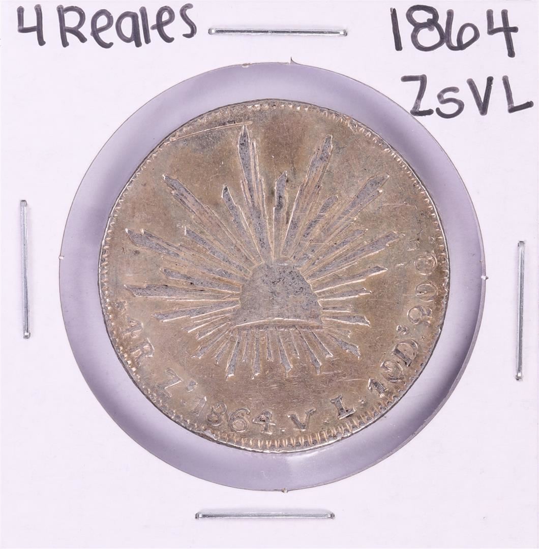 One 1864 ZsVL Mexico 4 Reales Silver Coin.