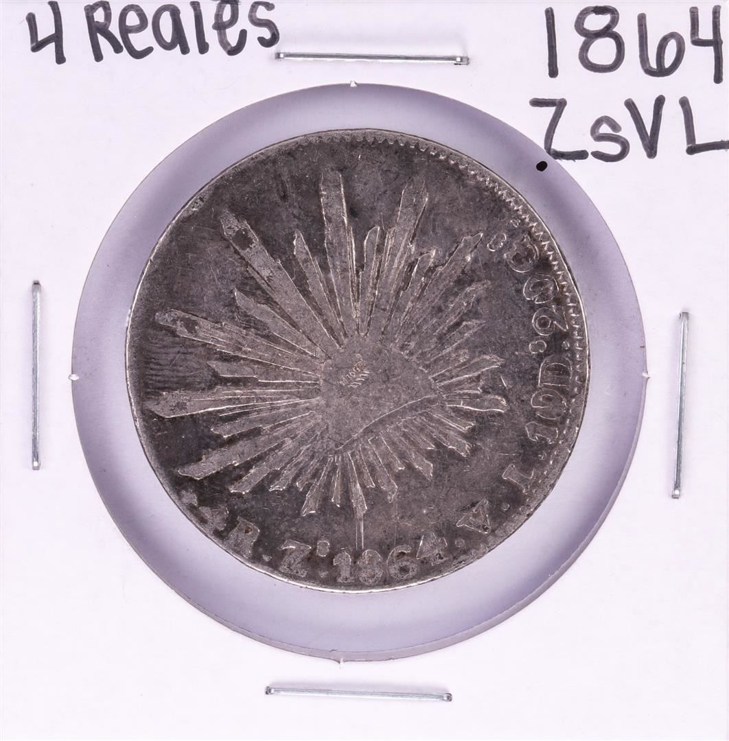 One 1864 ZsVL Mexico 4 Reales Silver Coin.