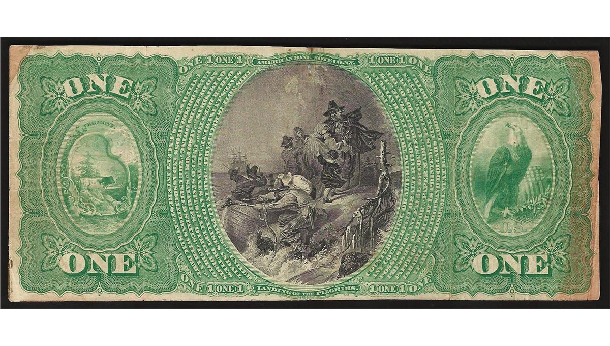 One 1865 $1 National Bank Newbury State of Vermont Currency Note.