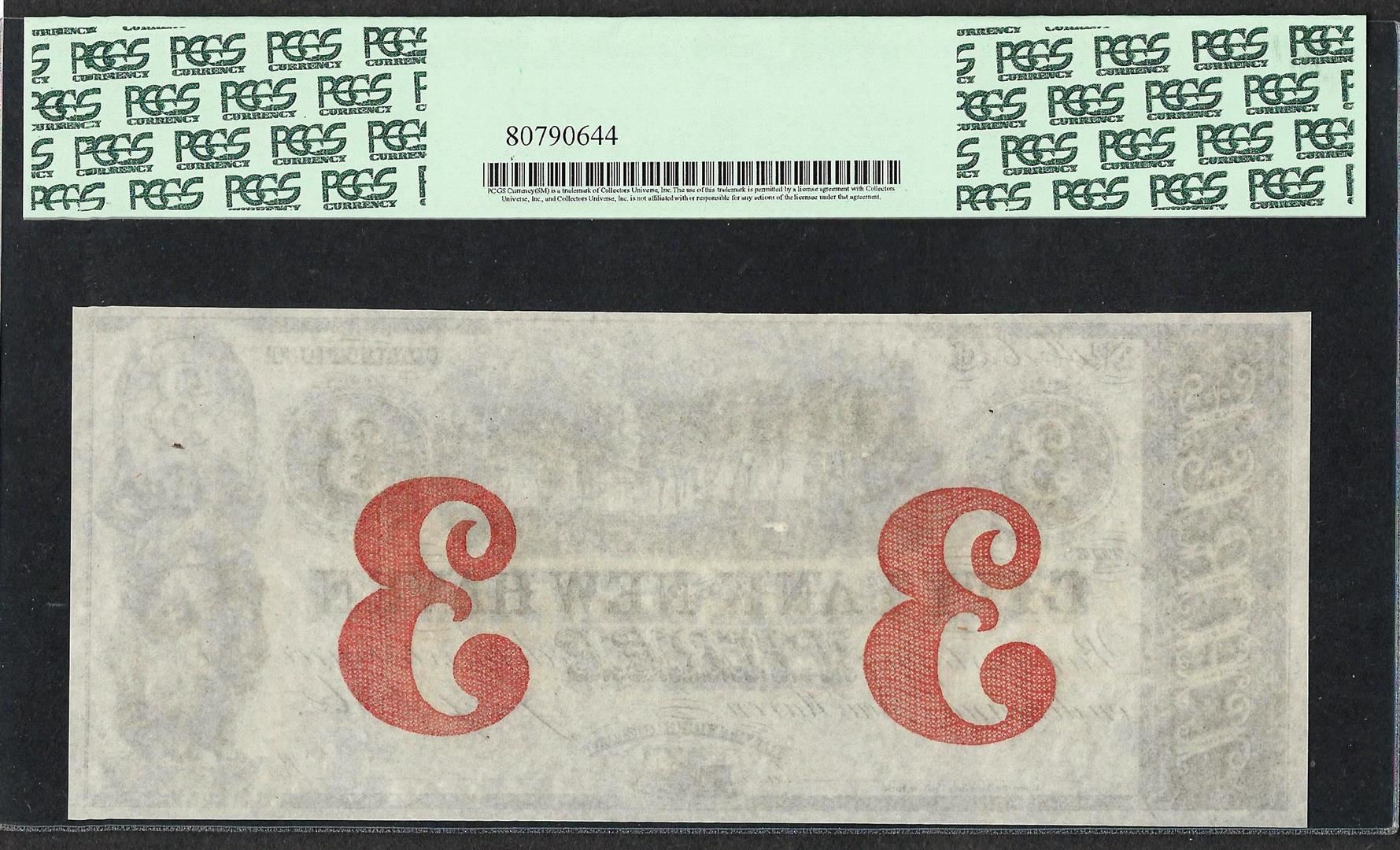 1865 $3 City Bank of New Haven Obsolete Note PCGS Gem New 66PPQ