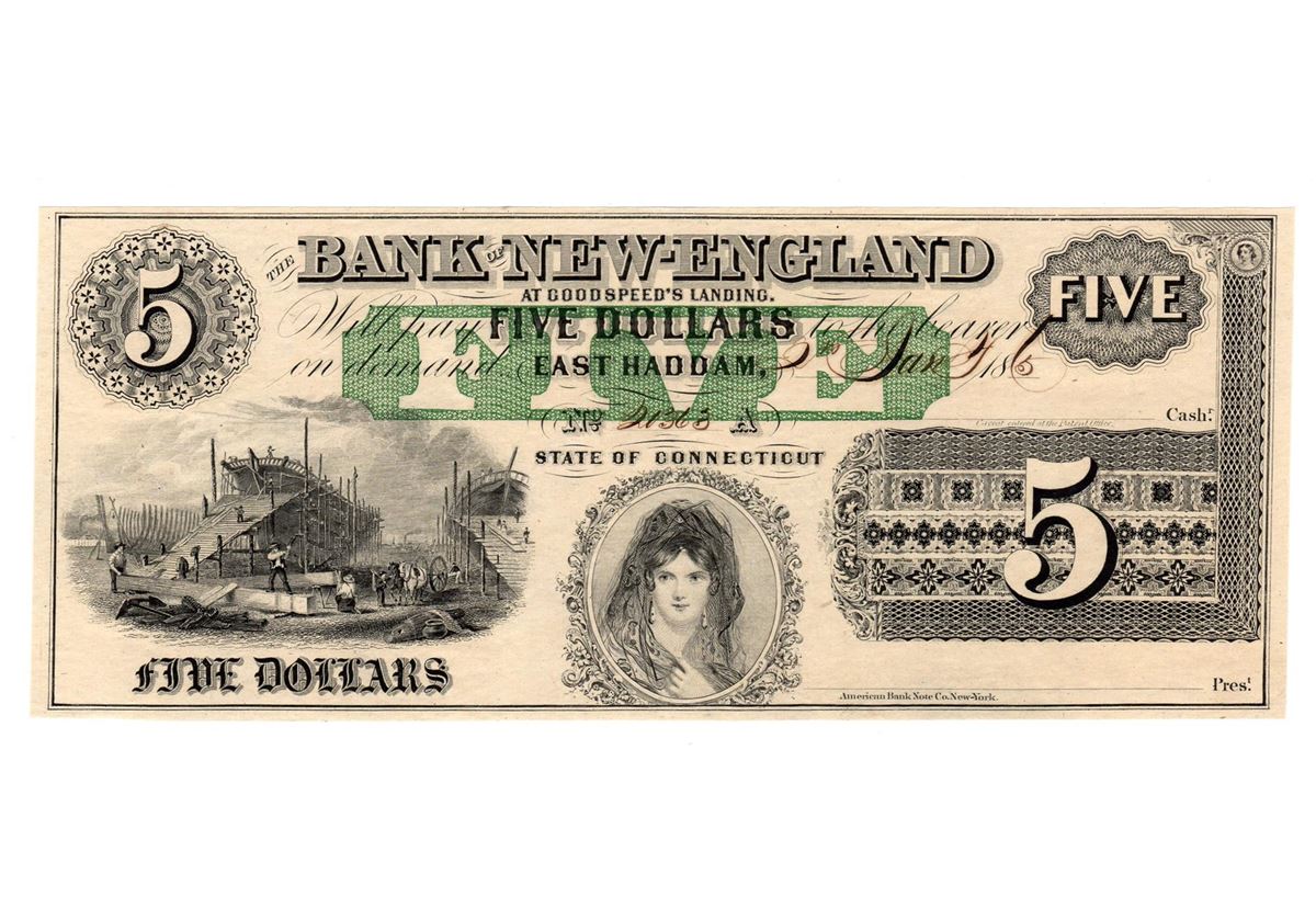 One 1865 $5 The Bank of New England Goodspeed's Note.