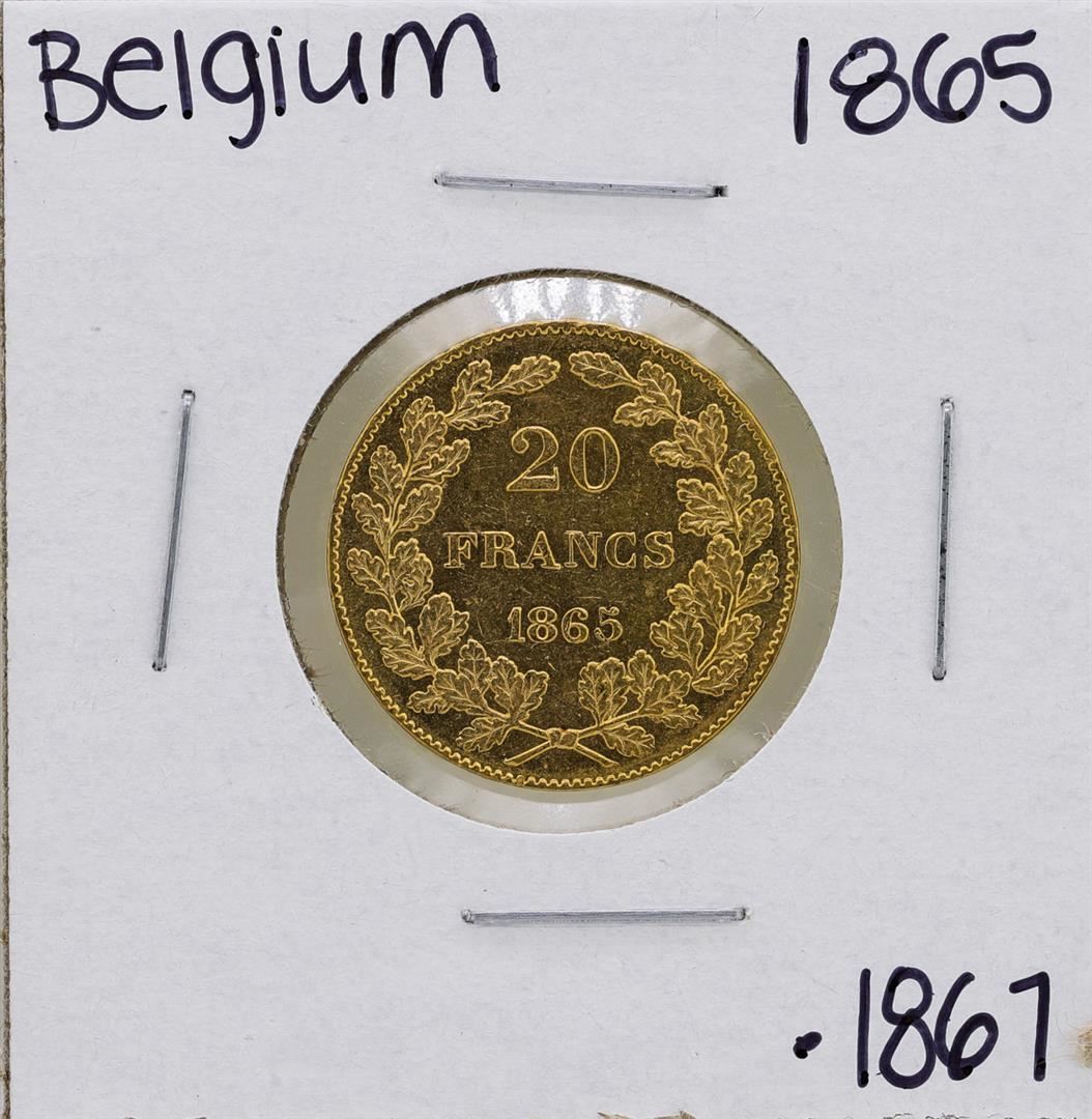 One 1865 Belgium Leopold 20 Francs Gold Coin.