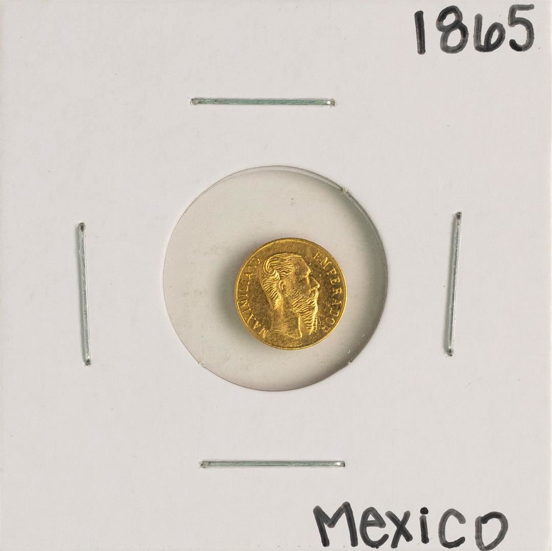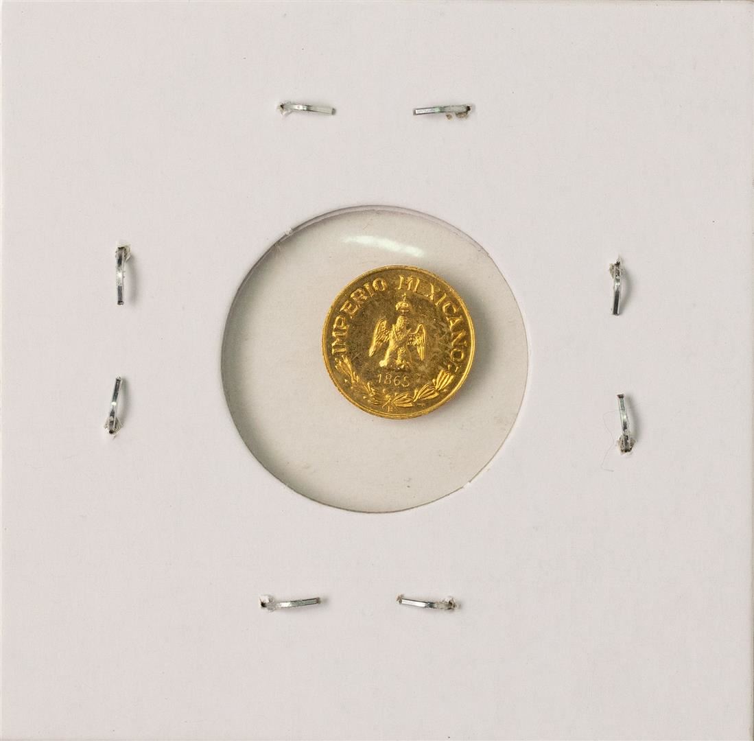 One 1865 Maximiliano Emperador Gold Coin - Total Weight of 0.44 Grams.