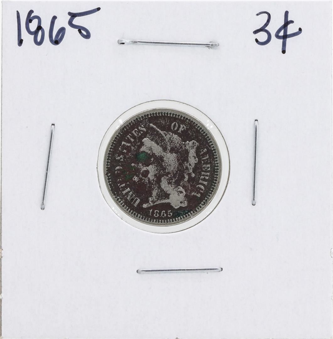 One 1865 Nickel Three Cent Piece Coin.