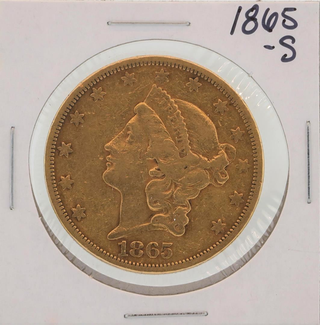 One 1865-S $20 Liberty Head Double Eagle Gold Coin.