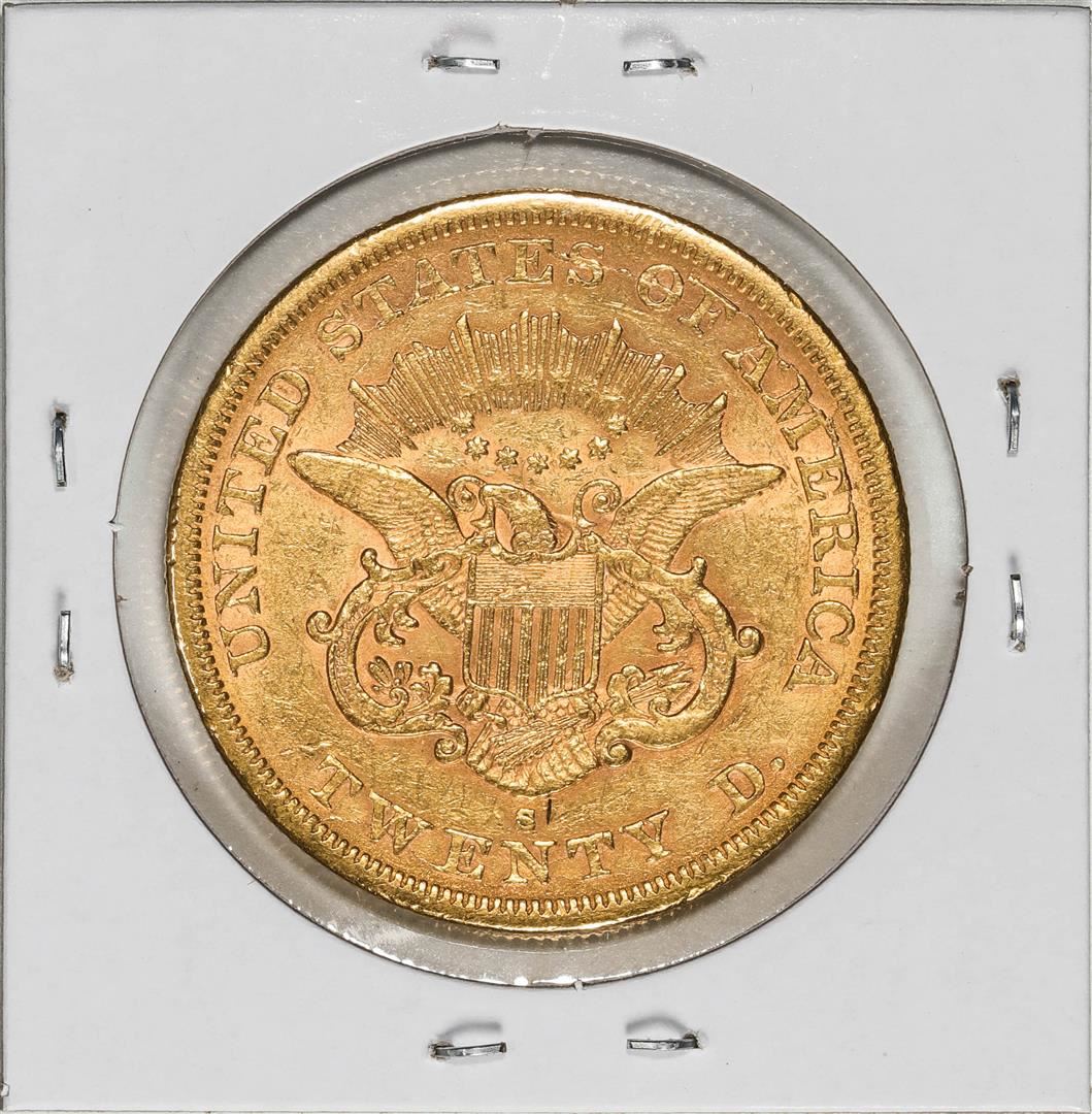 One 1865-S Type 1 $20 Liberty Head Double Eagle Gold Coin.