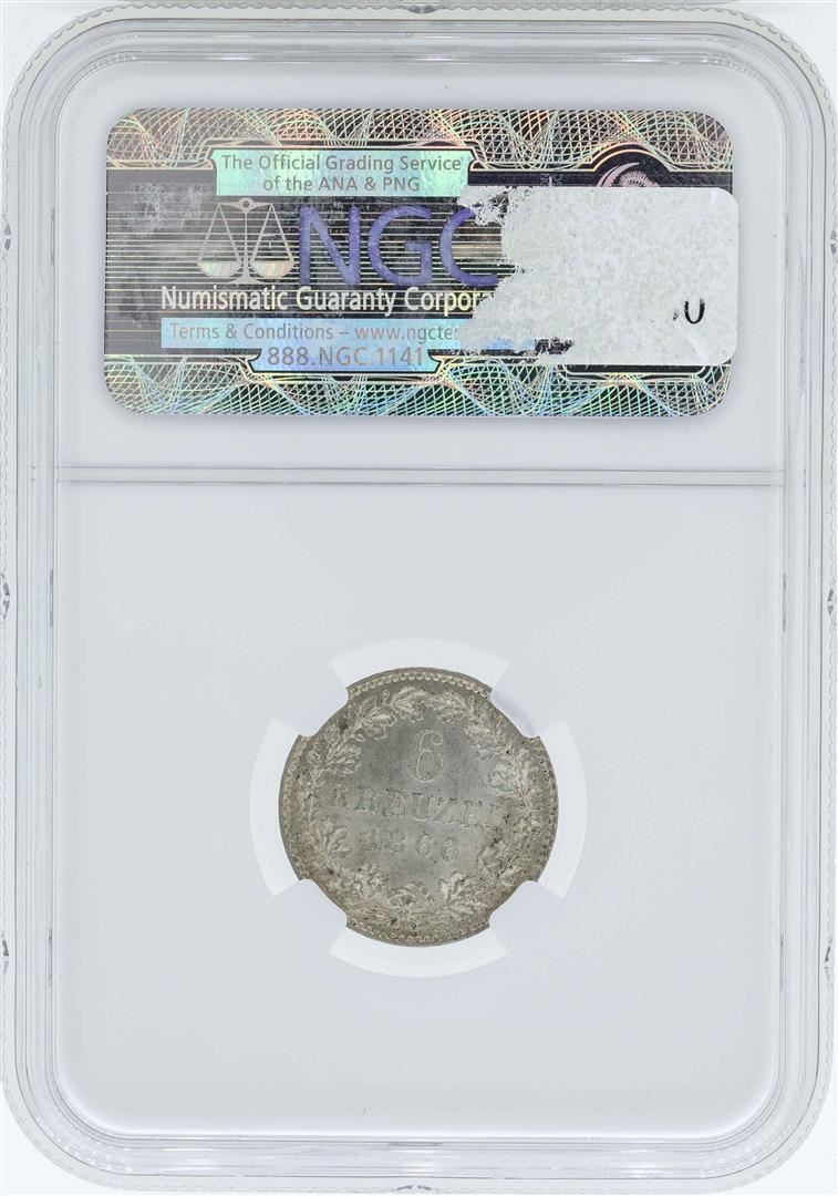 One 1866 Germany Frankfurt 6 Kreuzer Coin NGC MS65. NGC Certified.