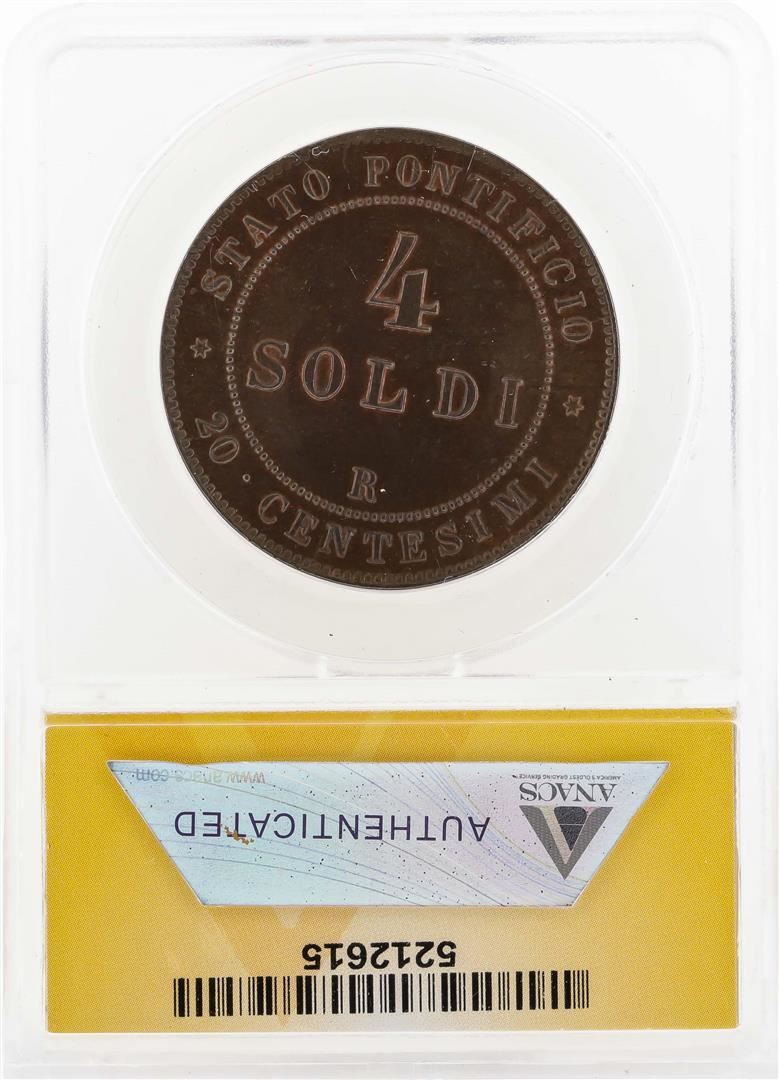 One 1866-R 4 Soldi Italian Papal States Coin ANACS MS64BRN. ANACS Certified.