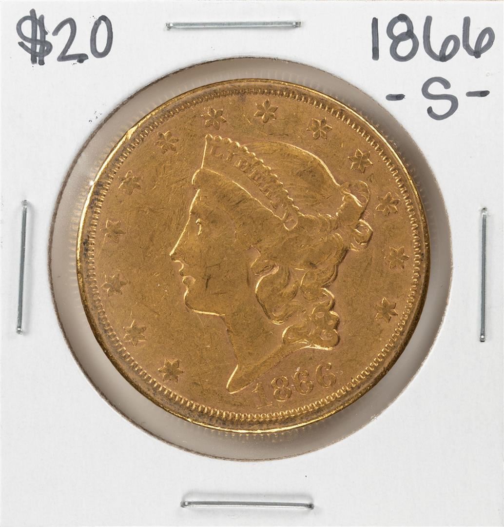 One 1866-S $20 Liberty Head Double Eagle Gold Coin.