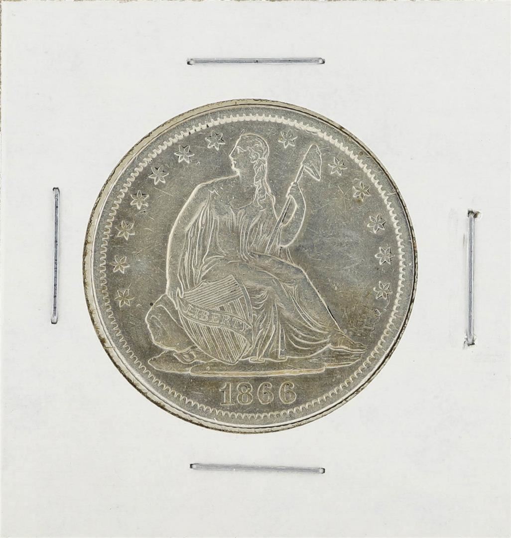 One 1866-S Seated Liberty Half Dollar Coin.