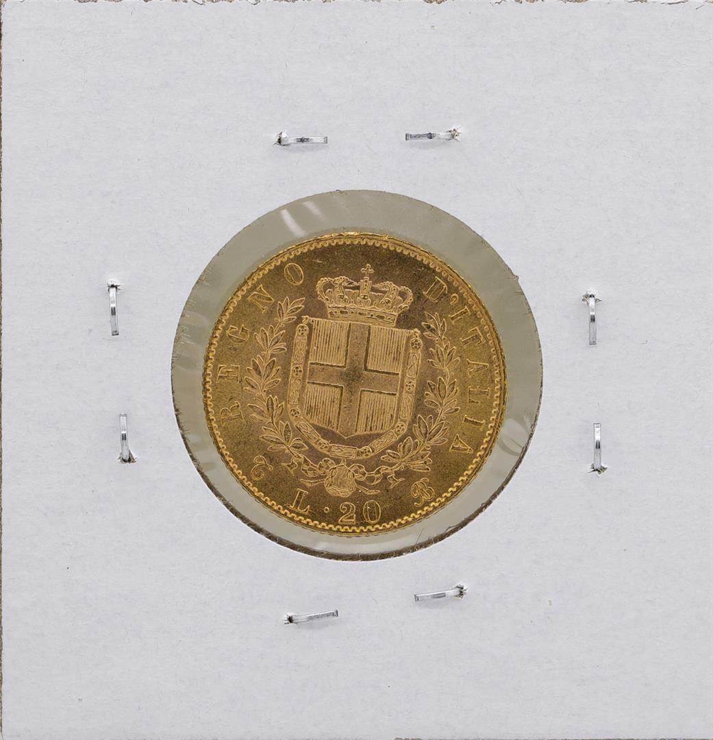 One 1867 Italy 20 Lire Umberto Gold Coin.