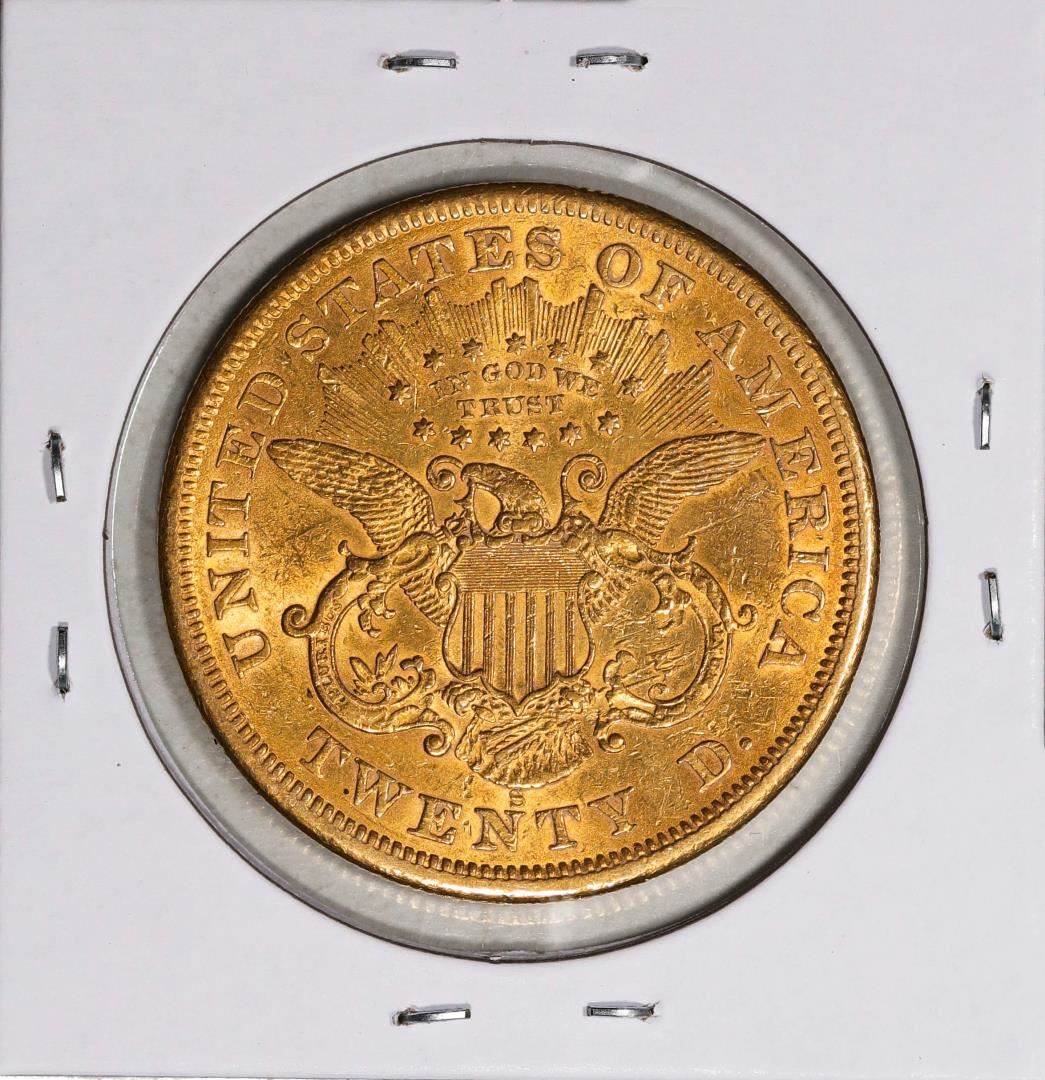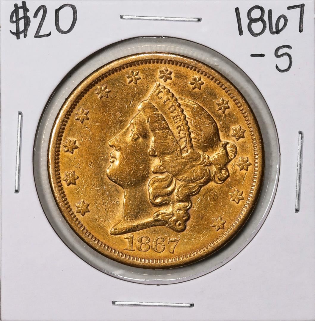 One 1867-S $20 Liberty Head Double Eagle Gold Coin.
