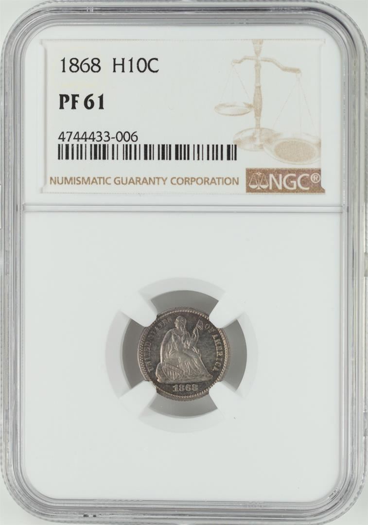 One 1868 Proof Seated Liberty Half Dime Coin NGC PF61. NGC Certified.