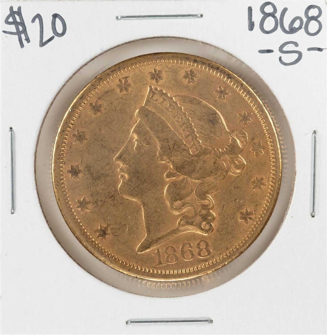 One 1868-S $20 Liberty Head Double Eagle Gold Coin.