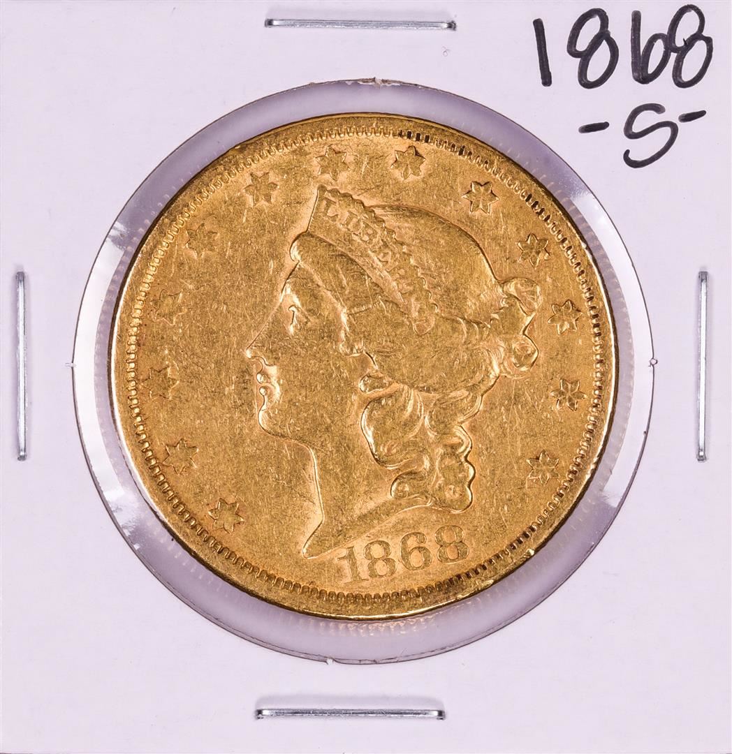 One 1868-S $20 Liberty Head Double Eagle Gold Coin.