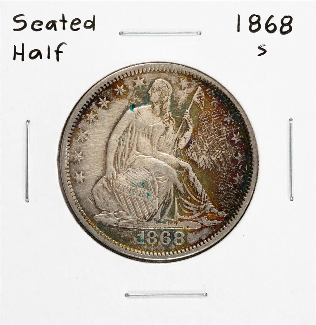 One 1868-S Seated Liberty Half Dollar Coin Amazing Toning.