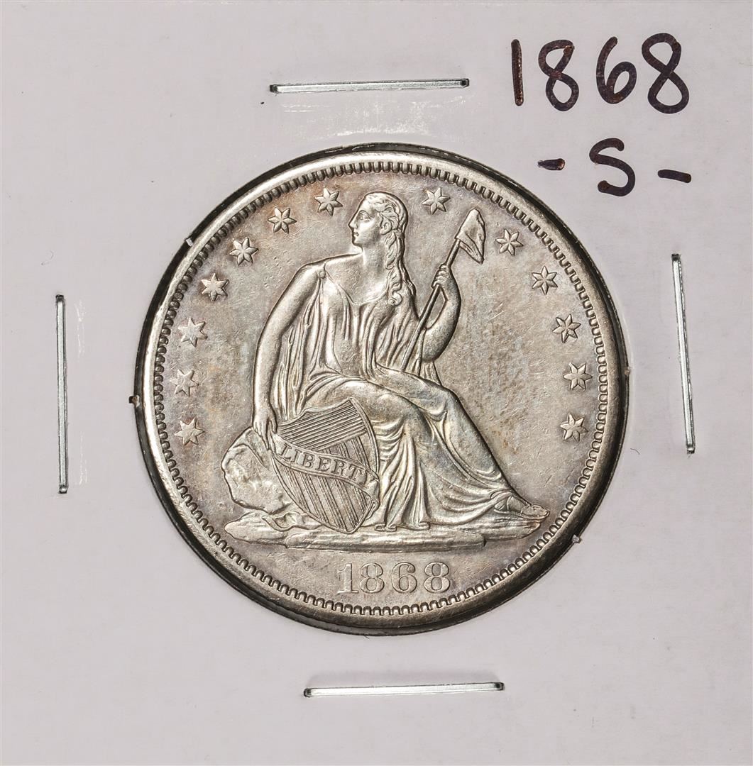 One 1868-S Seated Liberty Half Dollar Coin.