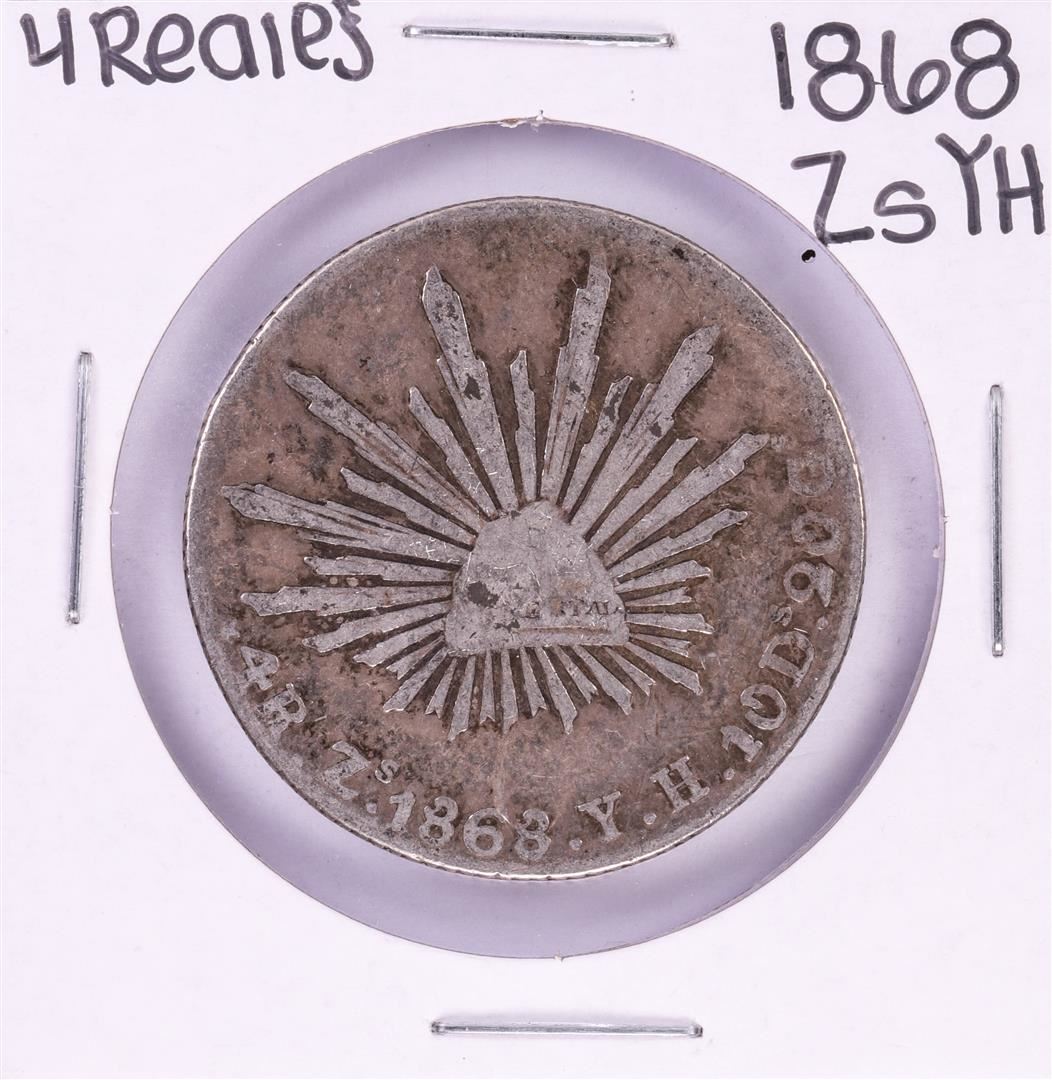 One 1868 ZsYH Mexico 4 Reales Silver Coin.