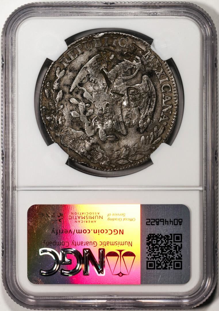 One 1868ZS YH Mexico 8 Reales Silver Coin NGC Chopmarked. NGC Certified.