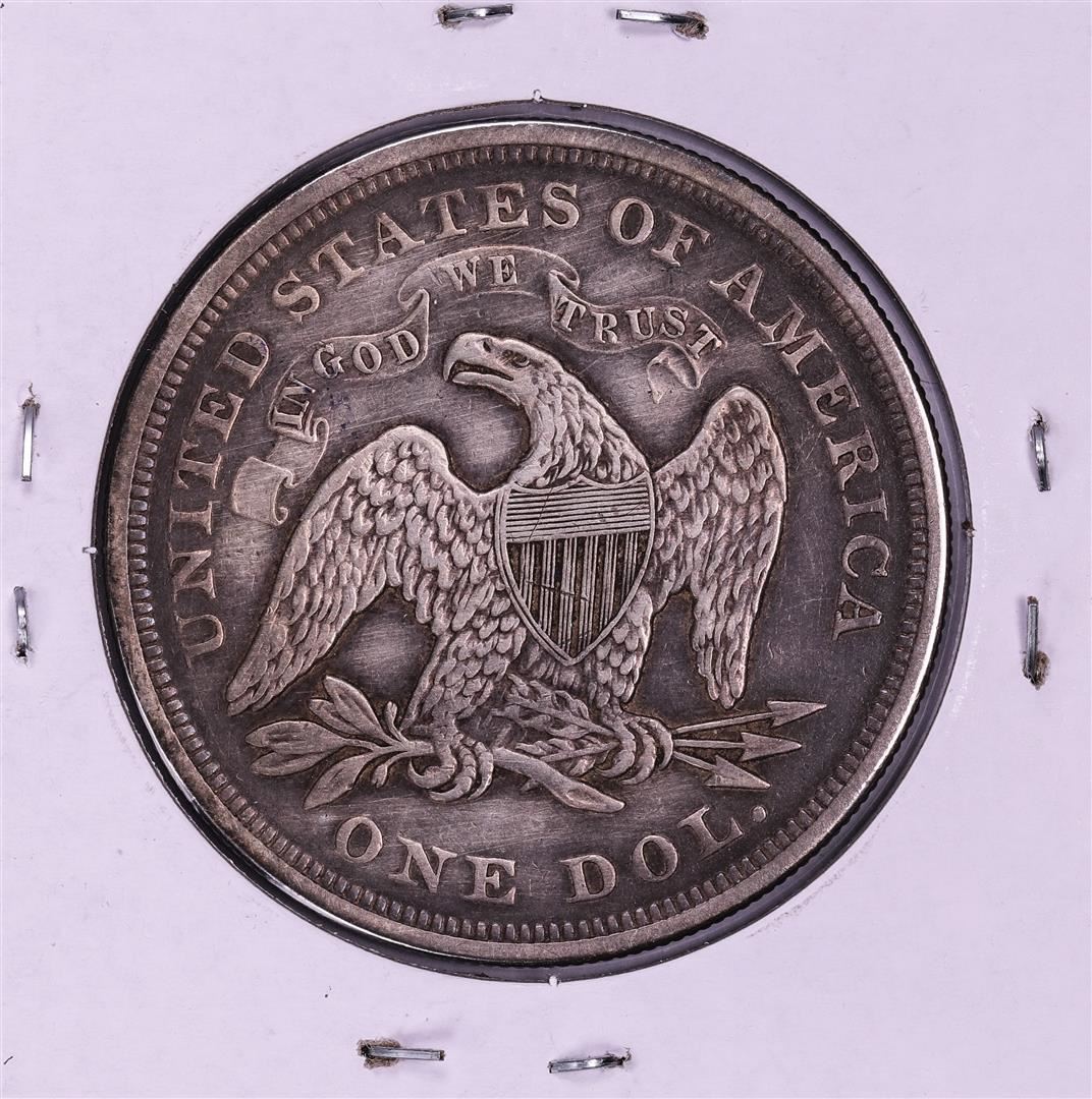 One 1869 $1 Seated Liberty Silver Dollar Coin.