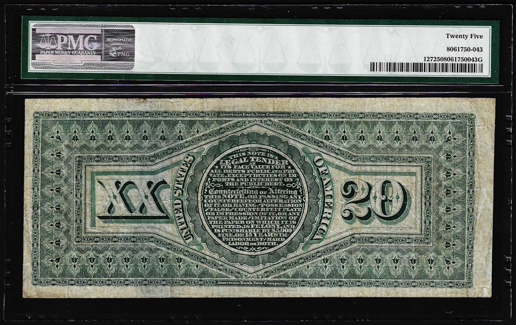 One 1869 $20 Legal Tender Note Fr.127 PMG Very Fine 25. PMG Certified.