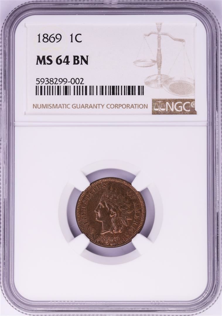 One 1869 Indian Head Cent Coin NGC MS64 BN. NGC Certified.